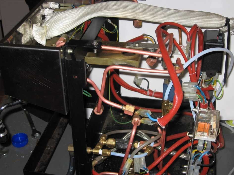 I just finished the refurb on my new acquisition. A Bezerra BZ 35e. This is a small commercial machine with a 2 l boiler, so is very suited to home use. Its also not too much larger than the BZ 99 and will fit in the kitchen nicely. My machine has a fluid-o-tech vibe pump, so doesnt need to be plumbed in, but can be if desired. It doesnt have an internal tank, so Im using an external water container.