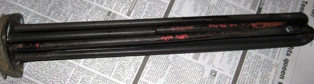 When I pulled the machine apart they all came out with a 100% dark brown / black coating (which I thought was the scale). After soaking for 24hrs plus in a mixture 2ltrs water and 500g (whole container) of Cafetto EVO descaling powder, and some scrubbing with one of those green pot scrubber pads, only very small areas of the HXs and bits of the element are going back to a orange copper colour. The small bits of white however (lime / calcium?) pretty much all disappeared or softened up and came away easily.