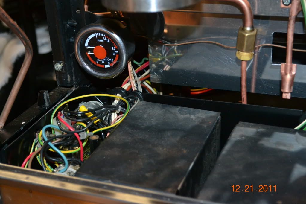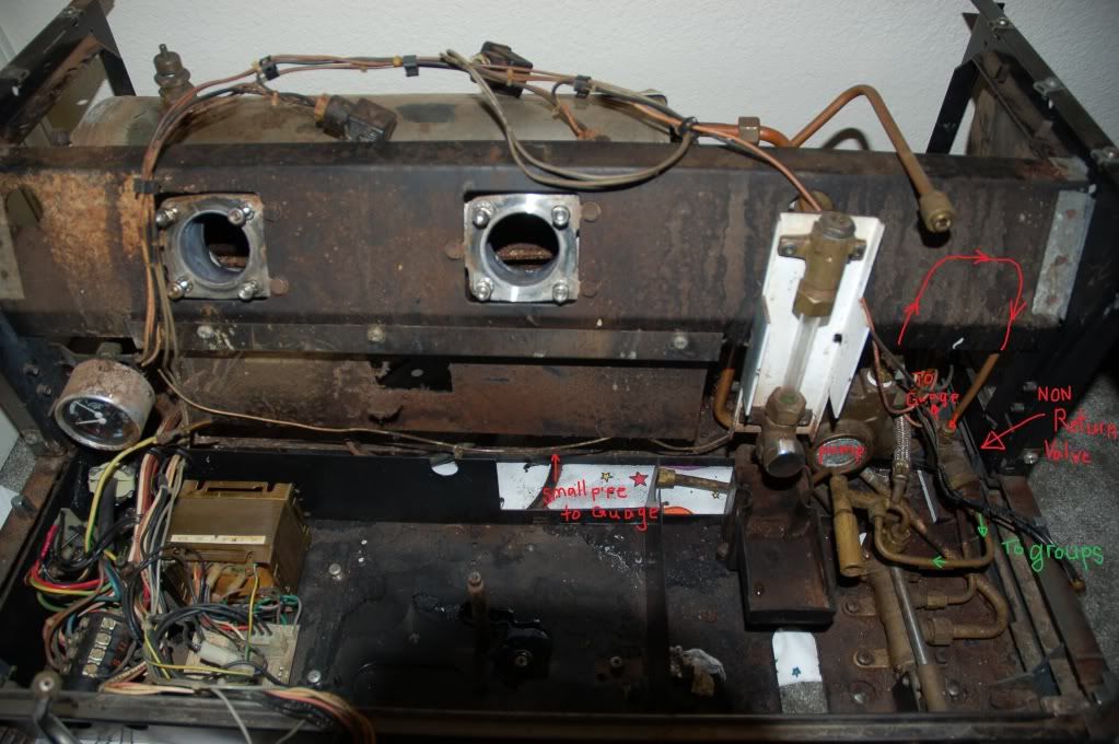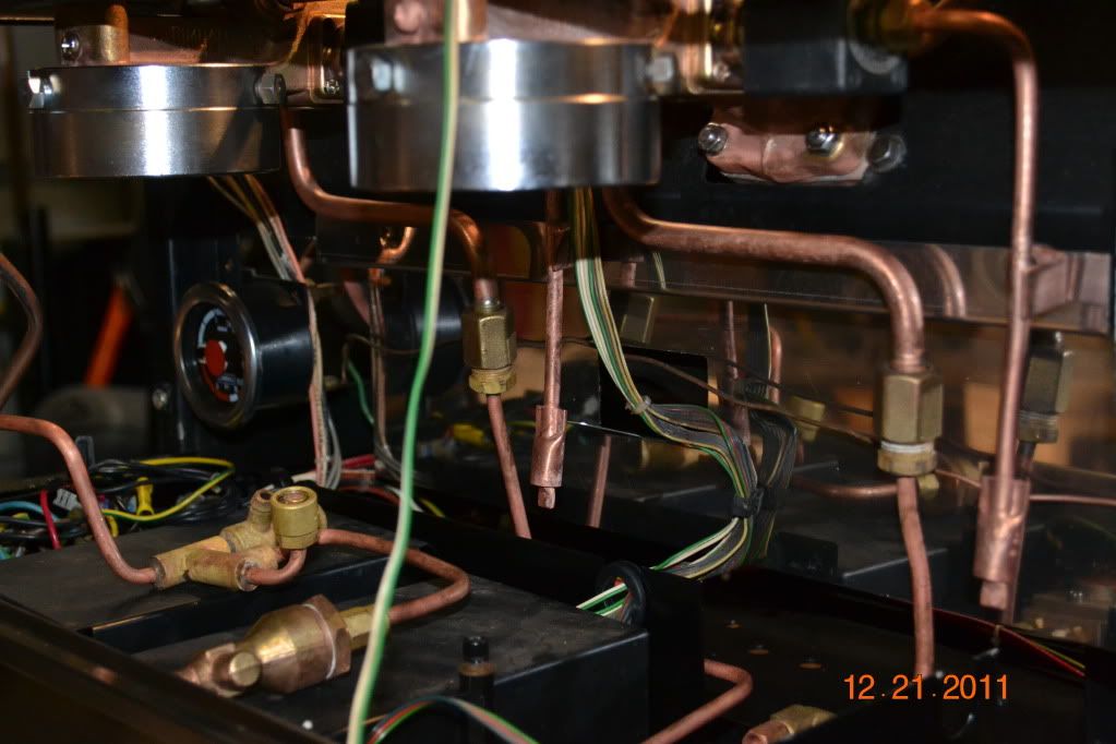 Where does the brew pressure feed to the gauge come from? I have a similar but smaller machine (single group Faema A1) and my gauge is only the boiler pressure. Have thought about swapping the single gauge for a dual like yours.