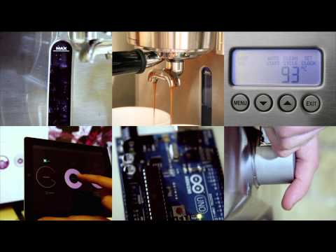 We've got a live feed from the micro-controller delivering data via laptop and fed into a piece of code that creates unique, one of a kind art, from how the machine is being used! It displays the data & the art on a 60" plasma & then prints the art on a coffee cup sleeve to take away and/or have it emailed to you to use as wallpaper or whatever you like!