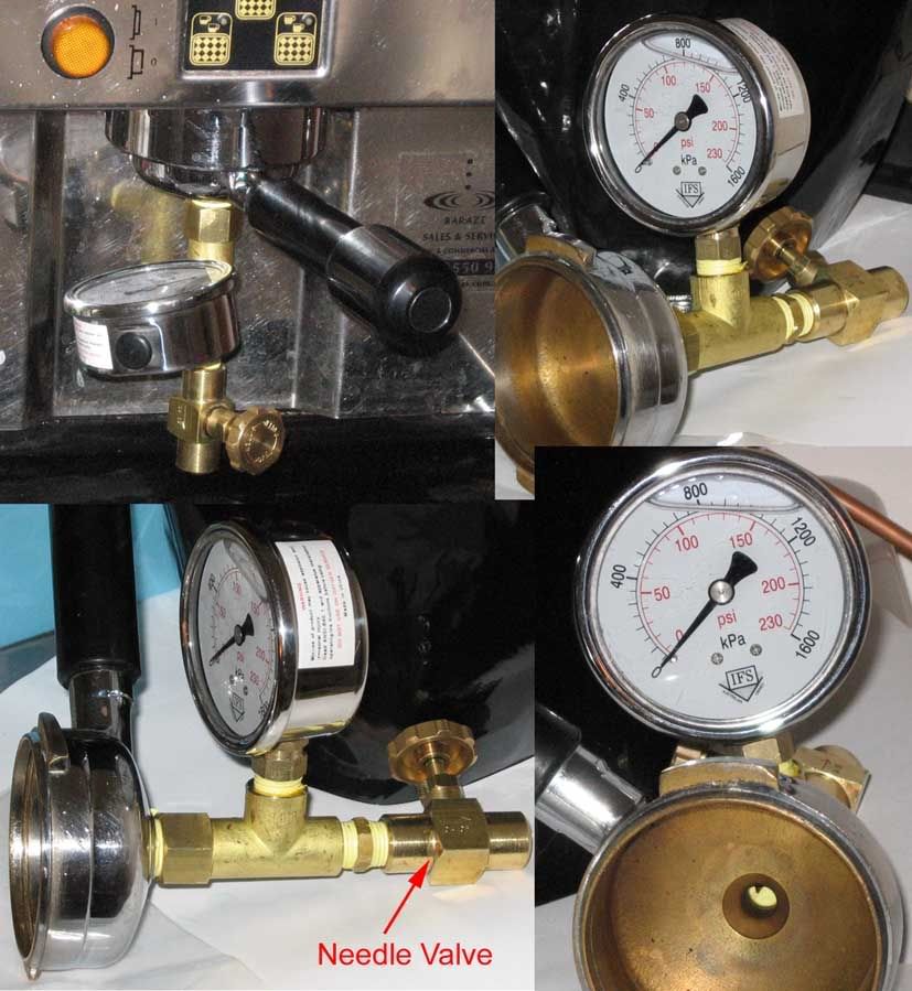 This is only the MkI model. I might go to attaching the gauge via a flexible teflon pressure line. However, it worked and has helped me try to understand how my machine is operating. The one caveat is that the needle valve doesnt seem to be a needle valve, but some other valve that seals and can be cajoled into letting the slightest dribble through before exploding and completely depressurizing the portafilter and making me take a trip to the laundry to wash my soiled undies