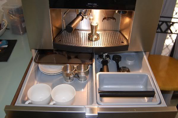 The drawer works particularly well as it contains the knock box and some moulded holders to store portafilters etc.