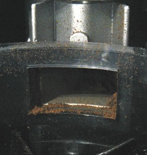 Point 2. is not so bad, as pulling the doser lever can help to break clumps. Point 3. is caused by the movement of the doser paddles, but it can be solved, look below. Point nr 4. is a bit annoying as a lot of coffee can get on your counter. I will try to make a small narrowing to make the hole smaller, which should also make the left coffee shift dissapear.