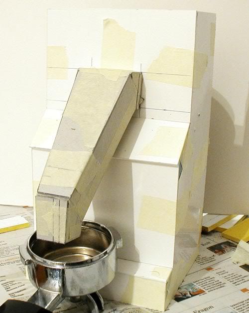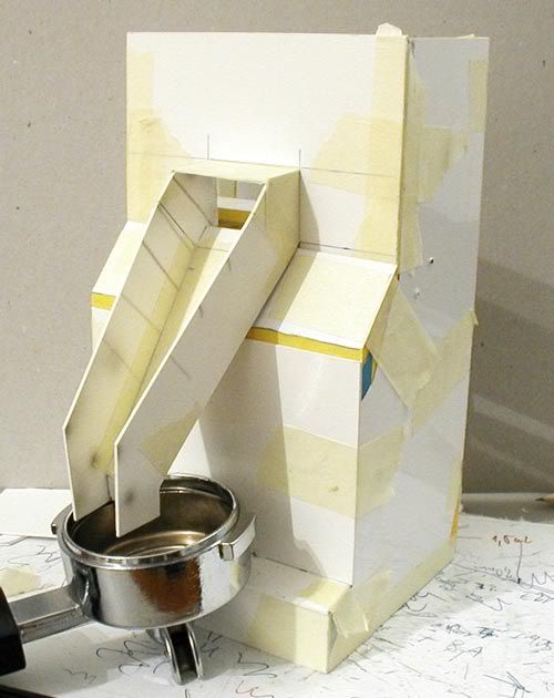 Ive got a small update. Ive tested the new cardboard shoot and it works good, the coffee slides down into to the PF and there are almost no clumps. Below you can see how the plastic case looks like. I know its not pretty and it looks like an elephant or some wierd alien machine, but it should work