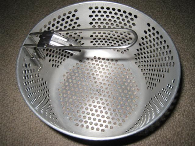 The stock pot it self is held above the board by two metal strips and the pot can be made to swivel if necessary to allow for the chaff to be disposed by tipping
